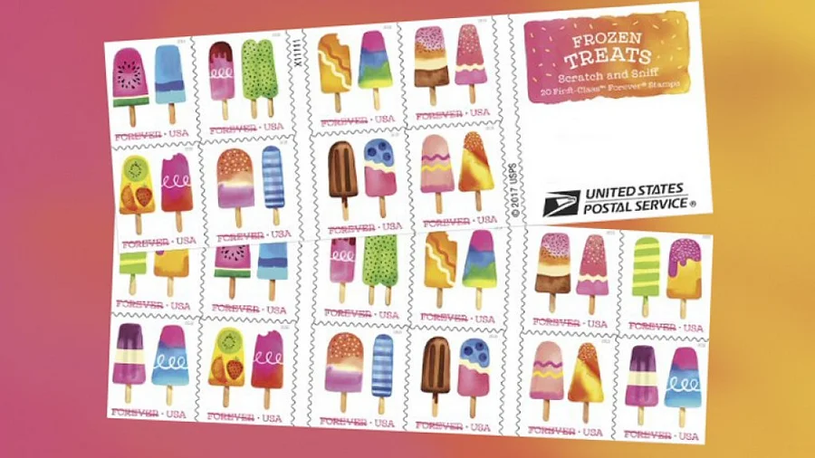 | Content | The aroma of the Frozen Treats Forever stamps will remind customers of the sweet scent of summer when mailing and receiving letters of love, friendship, party invitations and other correspondence.